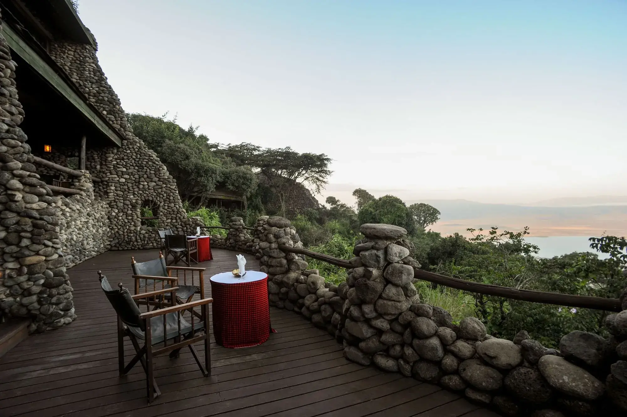 (A luxurious lodge offering breathtaking views of the crater, with an elegant blend of African heritage and modern comfort)